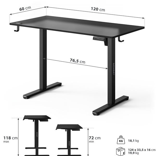 Biurko Sense7 Nojo Czarne 120×60 cm Sosna