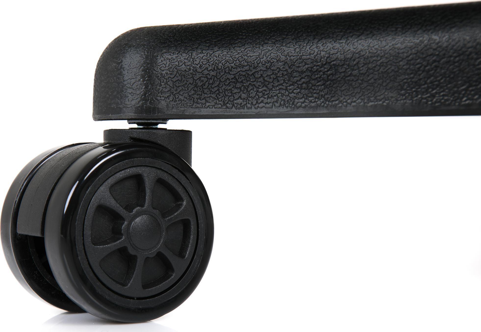 Nylonowo-kauczukowe kółka 60 mm umożliwiają płynne przesuwanie się po panelach czy dywanie bez ryzyka rys.